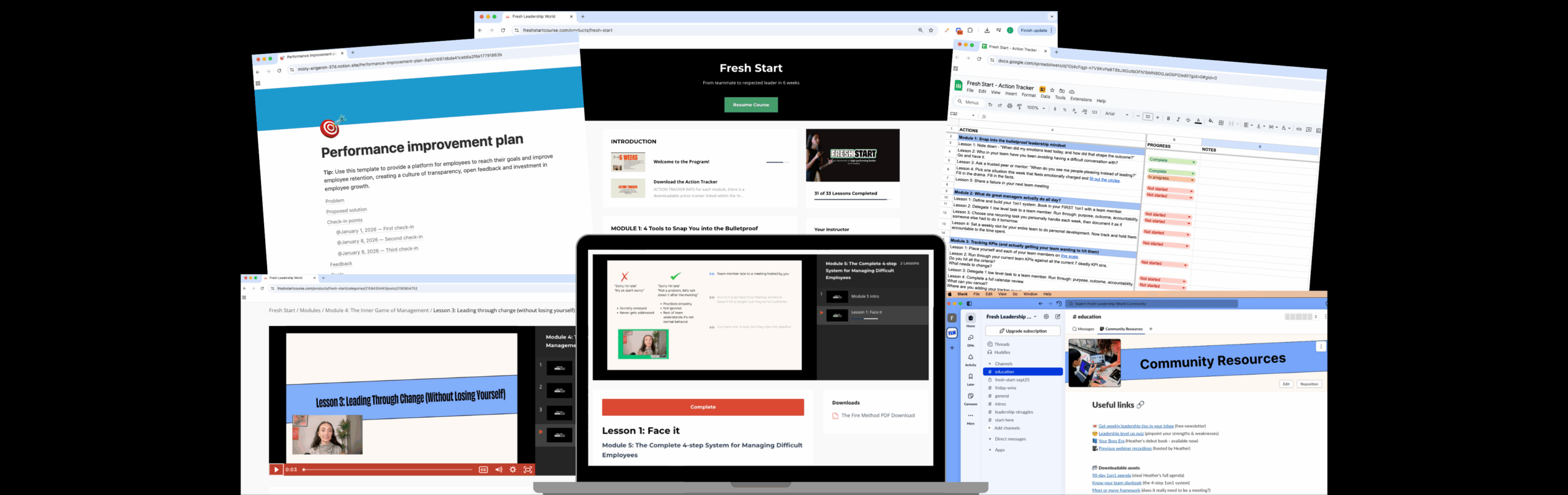 Now she’s built Fresh Start, the 6-week bootcamp that gives new managers the exact systems and mindset shifts she used to earn respect, drive accountability, and build teams that actually perform.